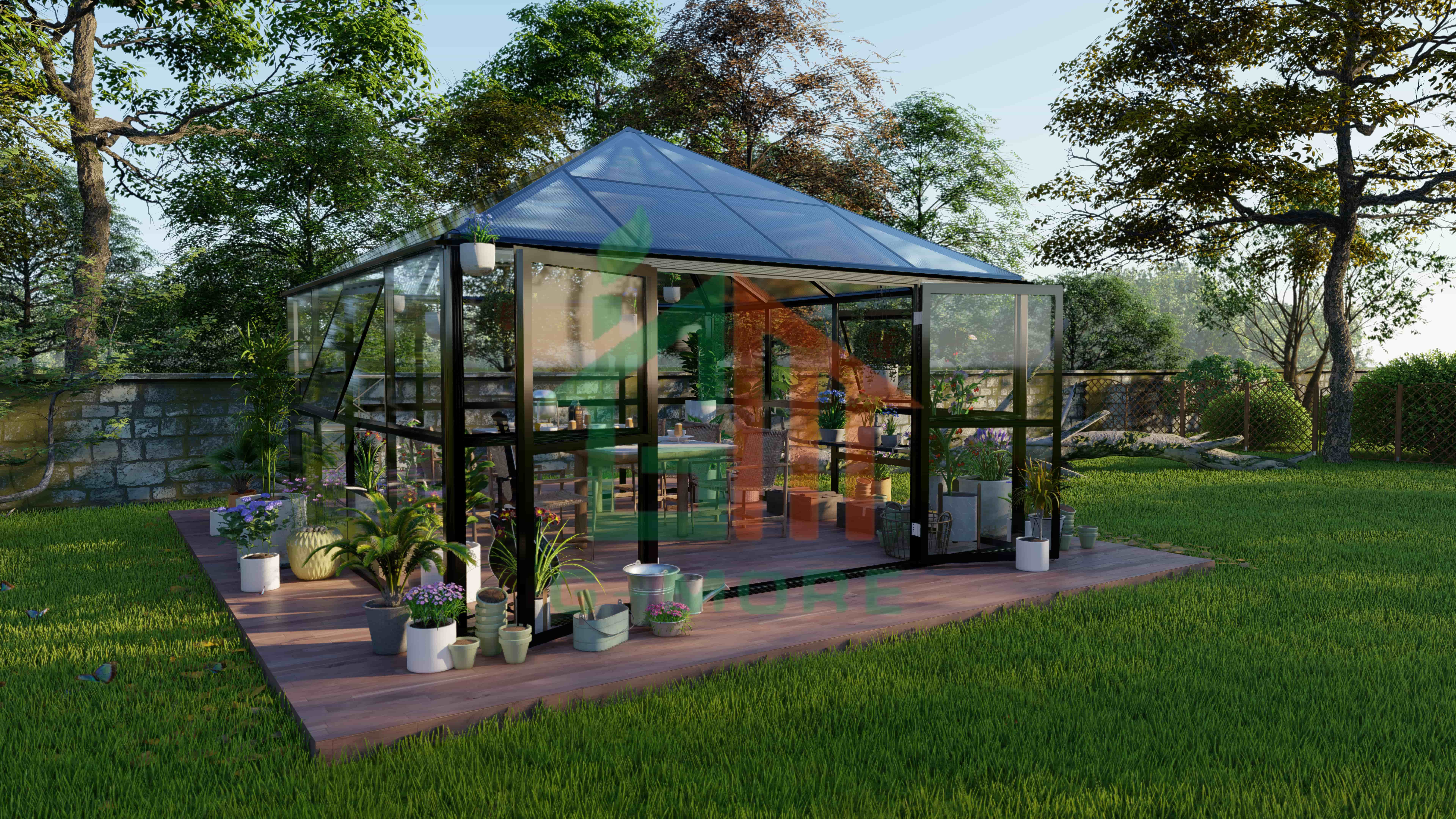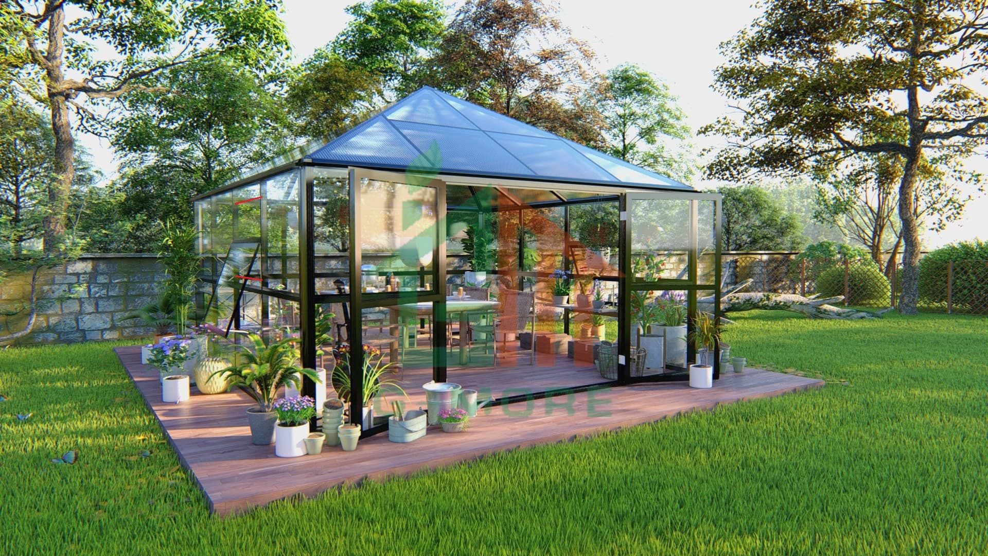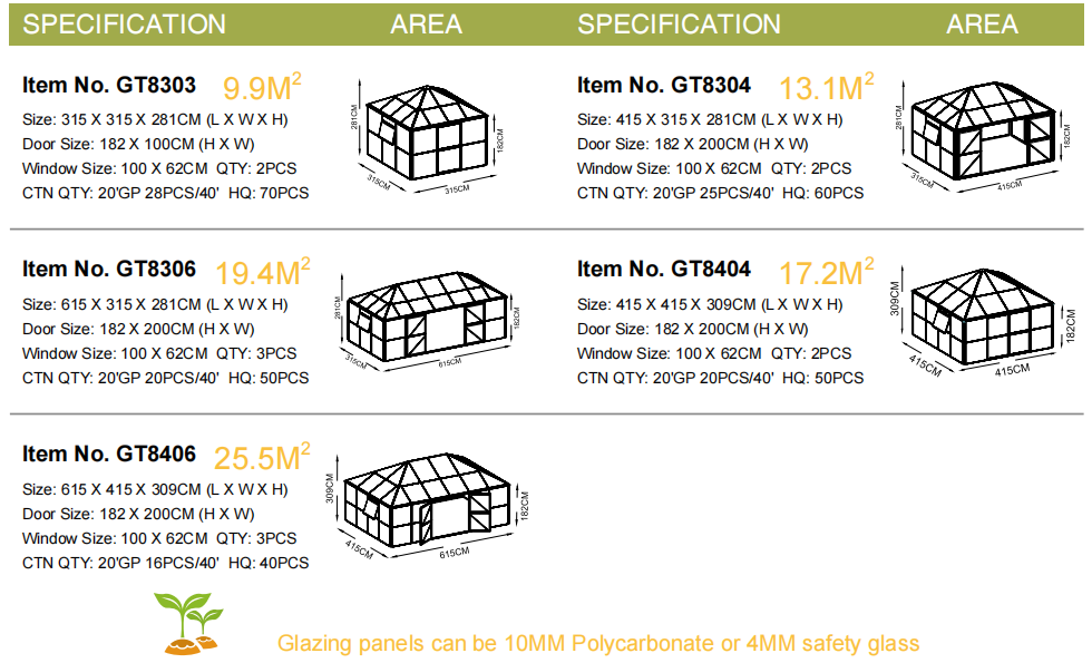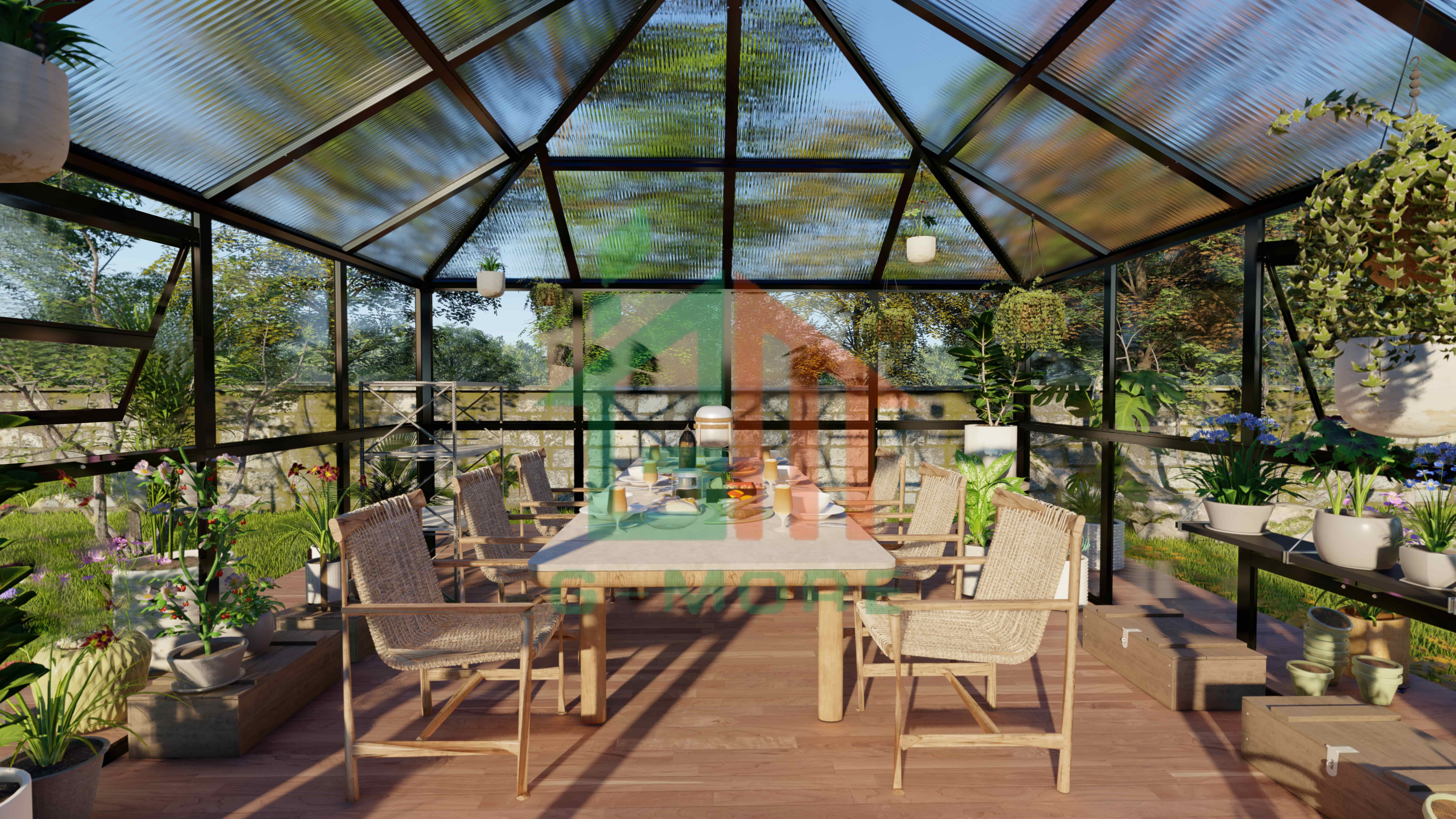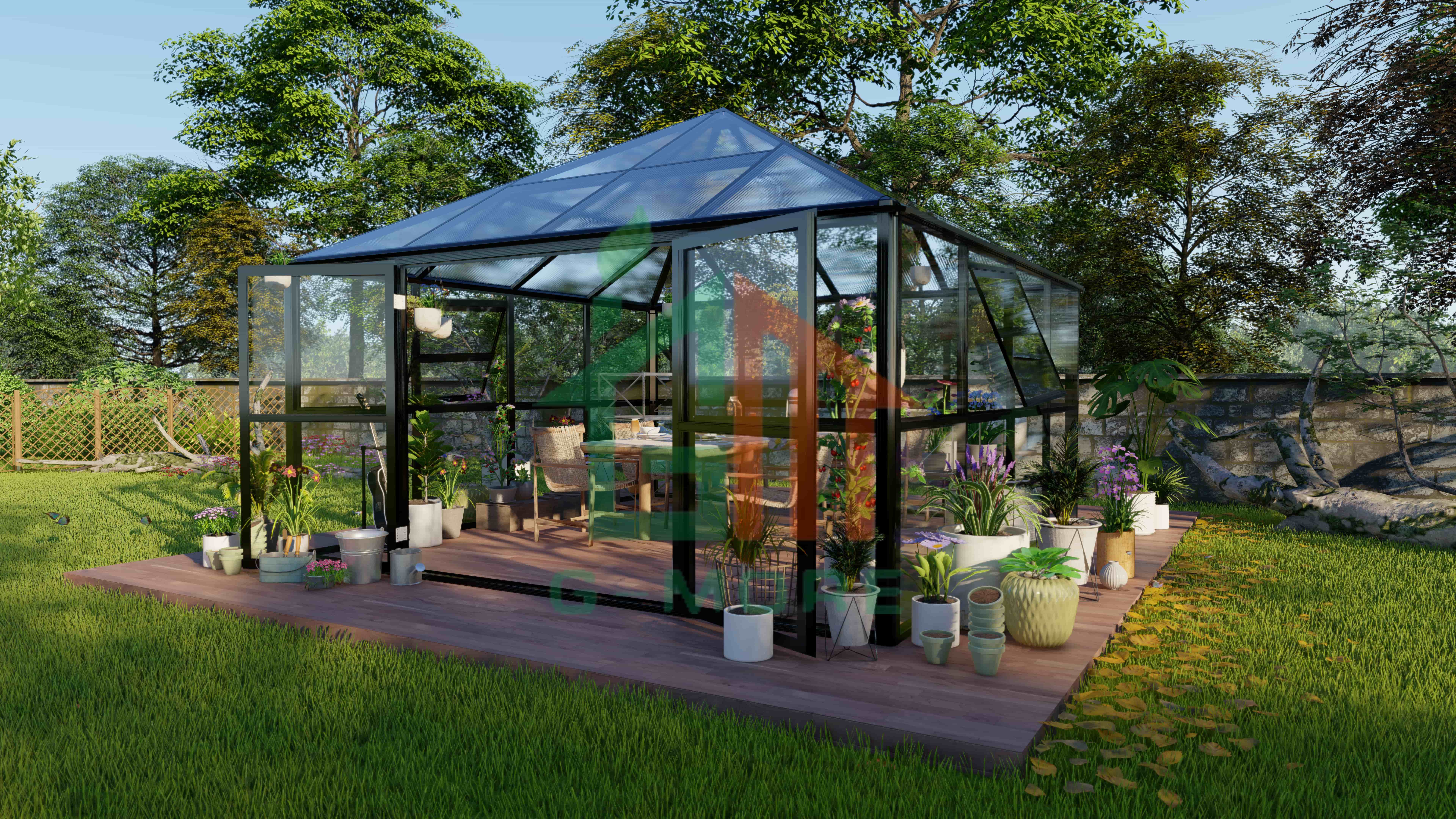 Being bored of sitting at home after work and  eager to find an outdoor space to relax and refresh  yourself? Our brand new GT Gazebo can just create  ‘the 3rd space’ for you! Rooting from our strongest  GT Titan range, this Gazebo owns all the features  & advantages of Titan Series, which is built with the  same ultimate strong aluminum profiles (box-type  /2mm thick) and 2 optional glazing panels (10MM  Poly or 4MM safety glass panels). This could make  it the strongest Gazebo / Pavilion Greenhouse on  the market, compared to other 4 / 6MM ones. And  it’s more than just a simple greenhouse for planting  & cultivation. You can also live and relax in such  a wonderful outdoor space by adding the bed,  furniture, etc., and even a hot tub as a spa room.  Your imagination is endless! So why not grab one  and now start a fresh outdoor life?