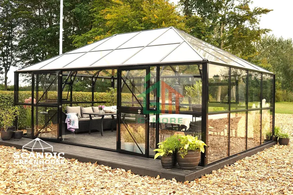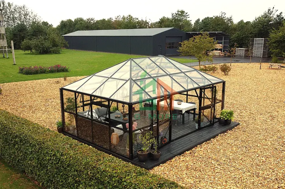 Being bored of sitting at home after work and  eager to find an outdoor space to relax and refresh  yourself? Our brand new GT Gazebo can just create  ‘the 3rd space’ for you! Rooting from our strongest  GT Titan range, this Gazebo owns all the features  & advantages of Titan Series, which is built with the  same ultimate strong aluminum profiles (box-type  /2mm thick) and 2 optional glazing panels (10MM  Poly or 4MM safety glass panels). This could make  it the strongest Gazebo / Pavilion Greenhouse on  the market, compared to other 4 / 6MM ones. And  it’s more than just a simple greenhouse for planting  & cultivation. You can also live and relax in such  a wonderful outdoor space by adding the bed,  furniture, etc., and even a hot tub as a spa room.  Your imagination is endless! So why not grab one  and now start a fresh outdoor life?